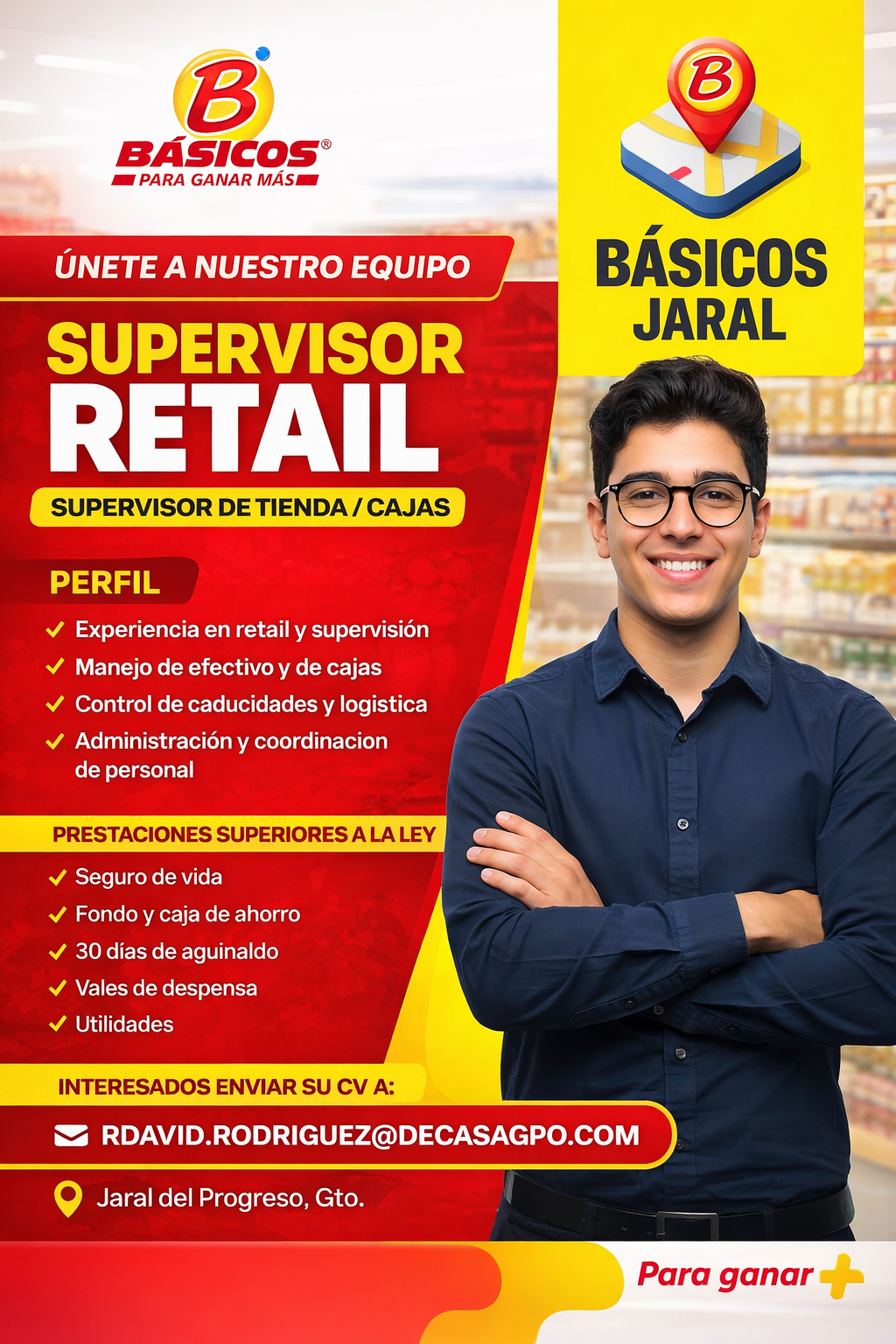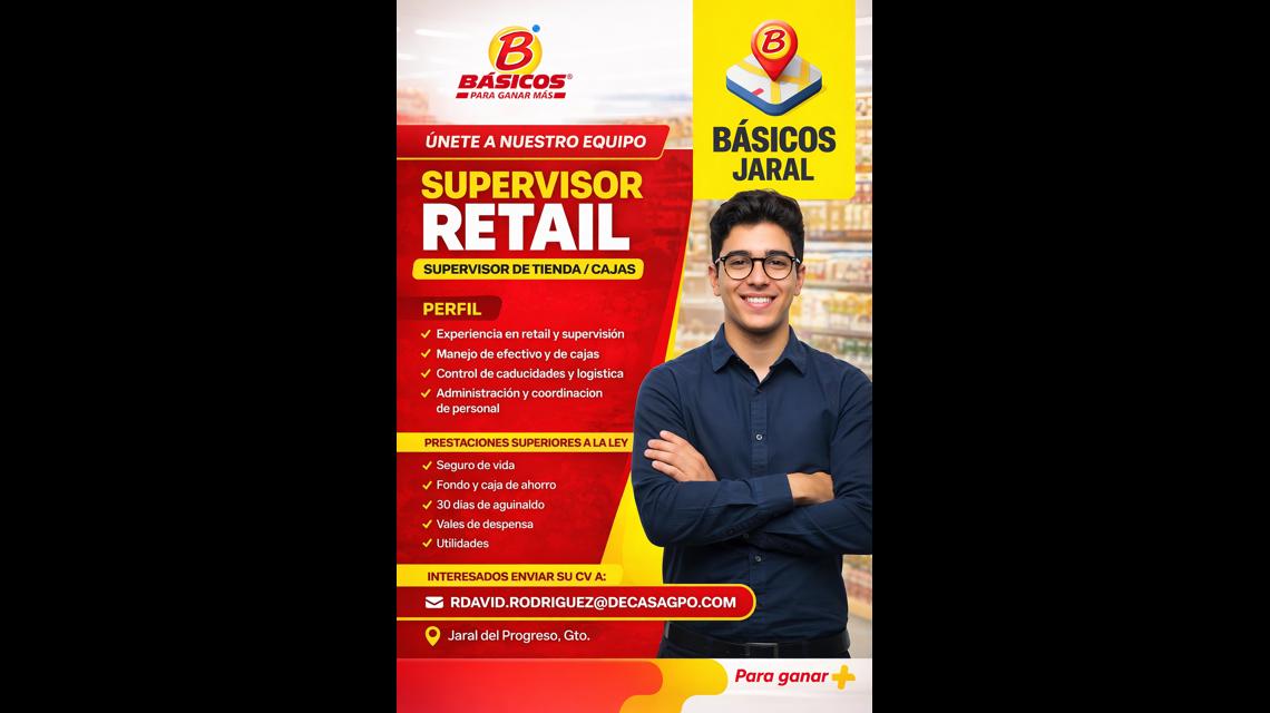 - Experiencia en supervisión en retail, autoservicio o tiendas de abarrotes.