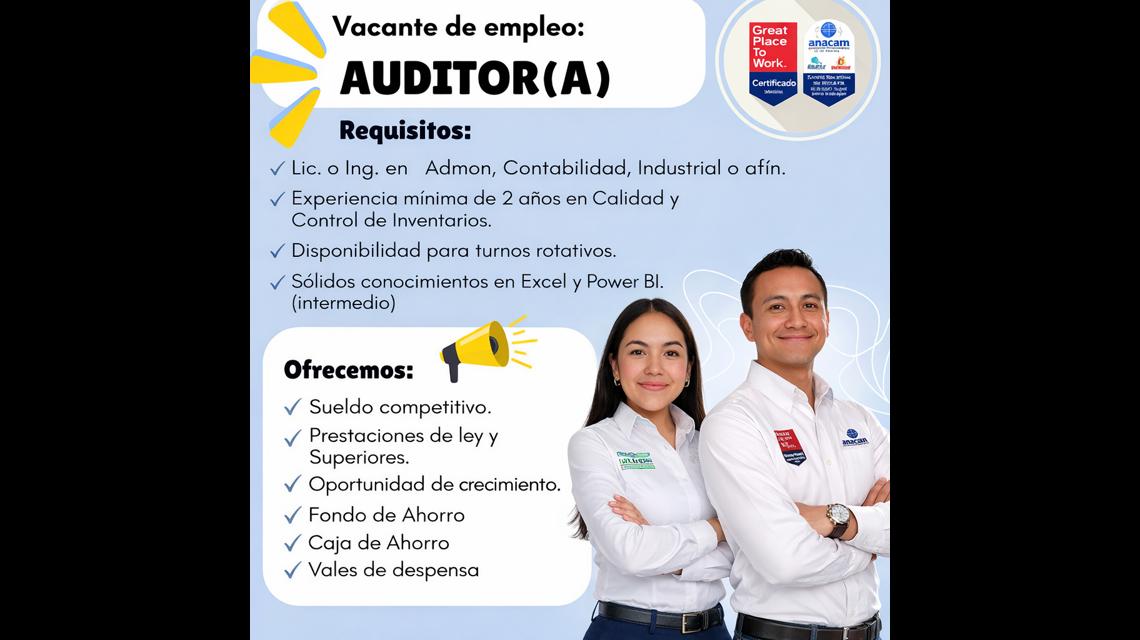 - Experiencia previa en auditoría de procesos y gestión de inventarios.